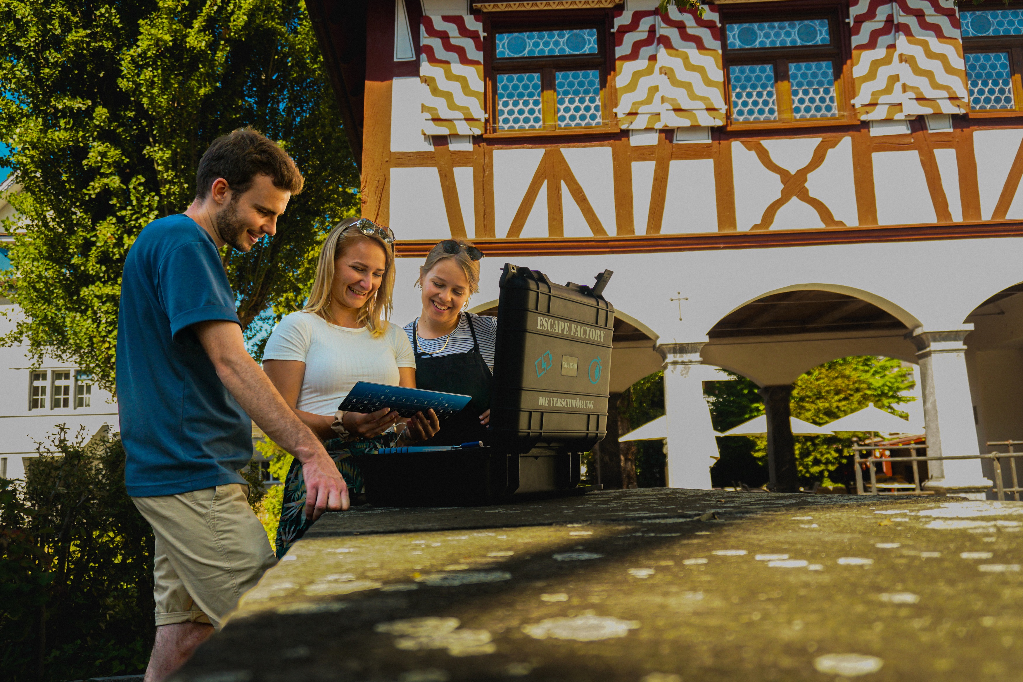Jedes Spiel erzählt eine eigene Geschichte. Bei jeder Geschichte der Escape Factory gibt es eine limitierte Spielzeit. Gemeinsam gilt es alle Rätsel zu lösen, bevor die Zeit abläuft. Ein Strategiespiel für Denker und Abenteurer. Aber Achtung, Einzelkämpfer haben keine Chance. Die Outdoor Version wird gemeinsam als Gruppe oder als Teamchallenge absolviert. 4 bis 260 Personen in Luzern/Sursee/Zofingen/Aarau oder nach Absprache. Bei schlechtem Wetter kann dasselbe Spiel stationär (ohne GPS) gespielt werden. Das mobile Rätselspiel wird als Tischversion gespielt und ist standortunabhängig. 10 bis 30 Personen - Das Spiel 20 bis 80 Personen - Das Manuskript Weitere Angaben auf www.escape-factory.ch