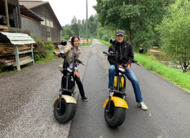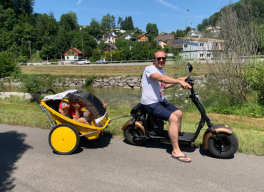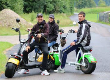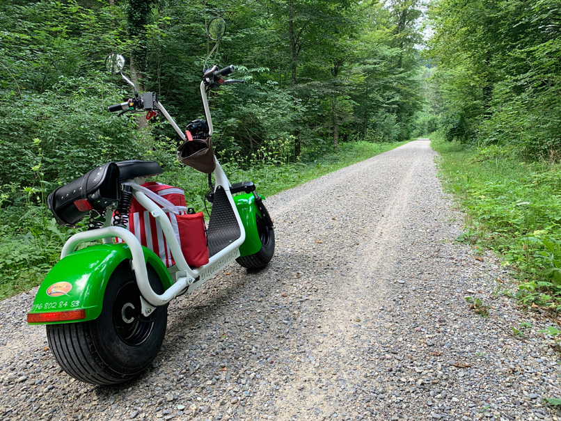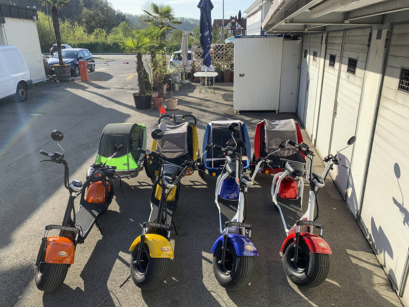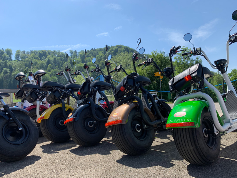 ENTDECKEN SIE DIE SCHÖNSTEN AUSFLUGSZIELE MIT DEM FATBOY - ES IST EIN VELO UND MOTORRAD ZUGLEICH! INFOS: Es stehen 30 Scooters zur Verfügung. Der Fatboy-Elektor-Scooter ist Velo und Motorrad zugleich und berechtigt auch zum Fahren auf den Velowegen. Er verfügt über einen 500 Watt Motor und erreicht eine Maximal Geschwindigkeit von 20 Km/h. Pro Tag können Sie damit maximal 30-40 km pro Tag zurücklegen. Alter: Jugendliche ab 14 Jahren mit Kat M. ” Töffliprüfung” ab 16 Jahre ohne Prüfung Es besteht keine Helmpflicht, für Kinder und Jugendliche empfehlen wir dennoch Velohelme. PREISE: Tagespauschale 80 CHF / 10:00 – 20:00 Pro Stunde 25 CHF Anhänger Leggero Twist 20 CHF Scooter mit Kindersitz hinten ( Für Kinder ab ca. 7 -14 Jahre ) 20 CHF Auf Anfrage / Reservierung mit Weber Babyschale ( Ab 3 Monaten geeignet ) Hundekorb vorne , bis max 7 Kg. 20 CHF Apero für Gruppen / 5 CHF pro Person ( Kaffe / Orangensaft / Wasser / Snack ) Verpflegung, siehe Preisliste Link